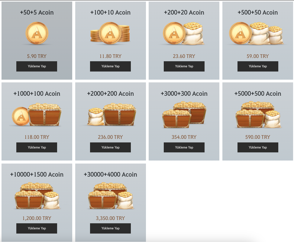 2.Satın almış olduğunuz acoin miktarını seçerek ''Yükleme Yap'' seçeneğine tıklayınız.